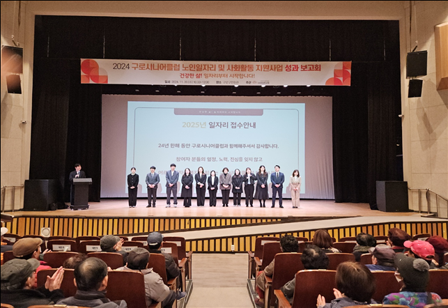 구로시니어클럽(관장 양임순)에서는 지난 11월 20일(수) 2024년 노인일자리 및 사회활동 지원사업 성과보고회를 구로구민회관에서 개최했다.